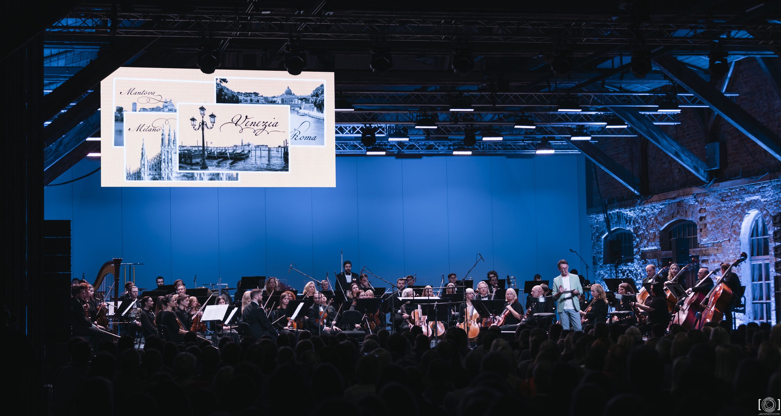 Multimediālajos koncertos allaž piedalās stāstnieks – dziesminieks un komponists Jānis Holšteins-Upmanis jeb Goran Gora –, kurš zinoši un atraktīvi spēj uzrunāt gan pieredzējušus klausītājus, gan tos, kas simfoniskās mūzikas koncertā ieradušies pirmo reizi. Koncerta formāts lieliski sasaucas ar jauno kompetencēs balstīto izglītības sistēmu, jo aptver muzikālos, vēsturiskos un kultūrvēsturiskos aspektus, nereti pieskaroties arī literārajiem un teatrālajiem iedvesmas avotiem.